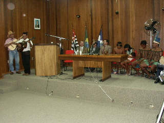 | A.A. Bispo e índios Xerente, Joanópolis © Foto: H. Hülskath, 2002 Archiv A.B.E.-I.S.M.P.S. |